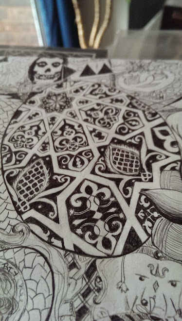 The 0 of 2013 for example was inspired by our holiday in Granada, Spain, the top left corner is inspired by a shawl I finished knitting, the top right corner has the cover of a book written by a friend, and the birth of England's new prince, each element having its meaning.